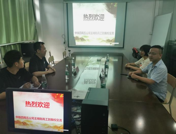6月11日下午,财税金融(建筑工程)公司邀请中国中铁四局第五工程有限公司技术中心副主任王明刚到校开展校企合作洽谈,就“国双高”项目建设中的产教融合、现代学徒制培养等合作项目进行座谈交流。公司副经理吕亨龙、工程管理教研室主任张乐、工程技术教研室主任莫璇及部分教师代表参加会议。