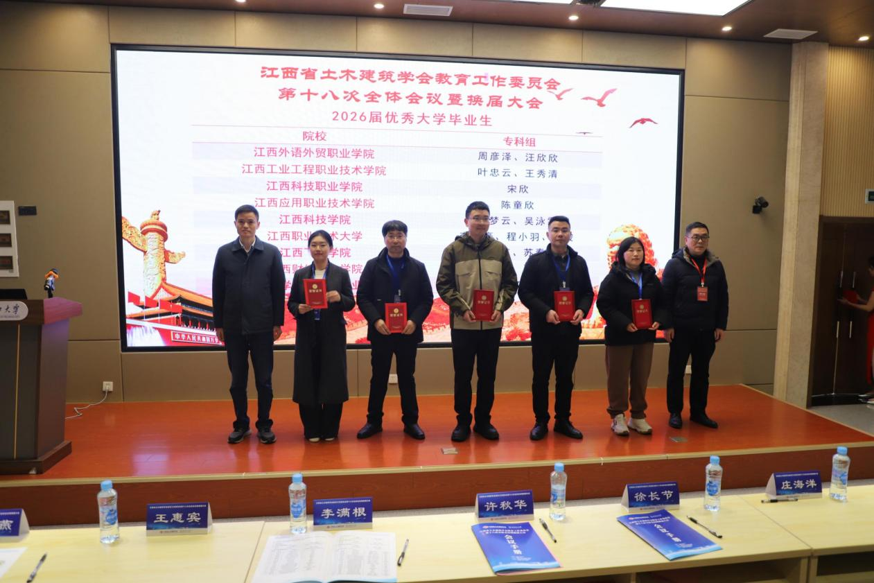 颁奖仪式上,委员会宣读2026届江西省建筑与土木工程专业优秀老员工名单并颁发证书。城乡建设学院获奖员工证书由与会教师代表代为领取。