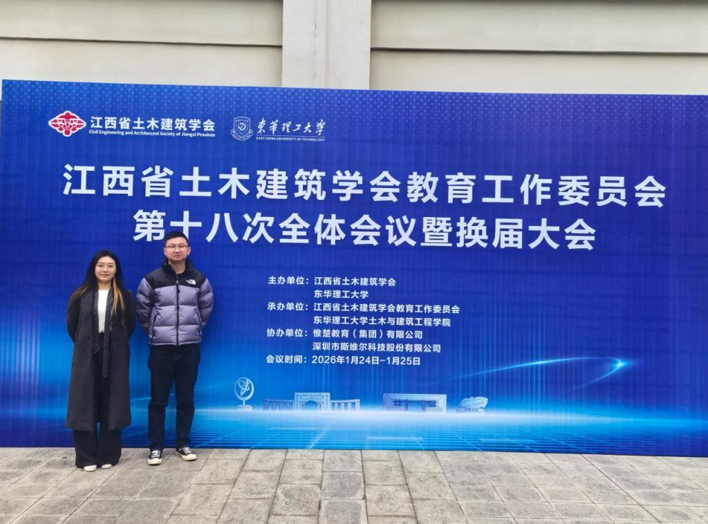 2026年1月25日,江西省土木建筑学会教育工作委员会第十八次全体会议暨换届大会在东华理工大学(广兰校区)召开。城乡建设学院副经理(挂职)张乐与教师代表程章卓参加会议,与来自全省各高校专家、企业代表共同参与学会换届选举,并就土木建筑类专业建设与发展展开深入交流。